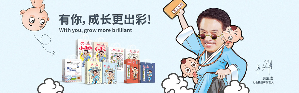 品牌名稱:七色豬 主營(yíng)產(chǎn)品:七色豬嬰兒紙尿褲 品牌特色:棉柔舒適 透氣干爽