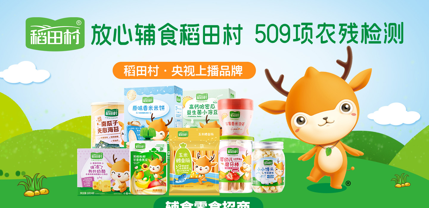 品牌名稱:稻田村 主營產(chǎn)品:稻田村嬰童零食,稻田村嬰童輔食招商 品牌特色:放心輔食稻田村 509項農(nóng)殘檢測