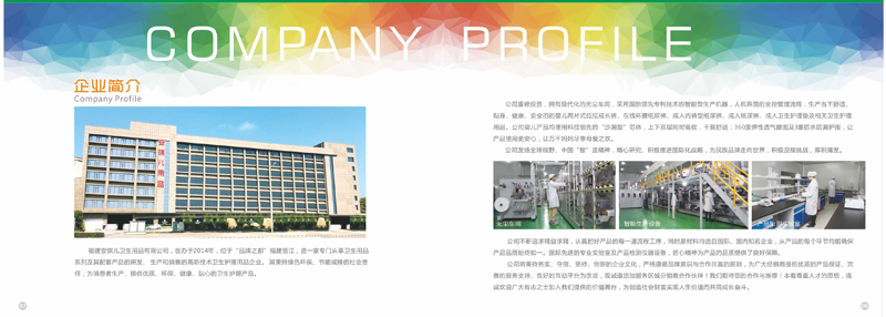 福建安琪兒衛(wèi)生用品有限公司創(chuàng)辦于2014年,位于“品牌之都”福建晉江,是一家專門從事衛(wèi)生用品系列極其配套產(chǎn)品的研發(fā)、生產(chǎn)和銷售的高新技術(shù)衛(wèi)生護(hù)理用品企業(yè)。其秉承綠色環(huán)保、節(jié)能減排的社會責(zé)任,為消費(fèi)者生產(chǎn)、提供優(yōu)質(zhì)、環(huán)保、健康、貼心的衛(wèi)生護(hù)理產(chǎn)品。