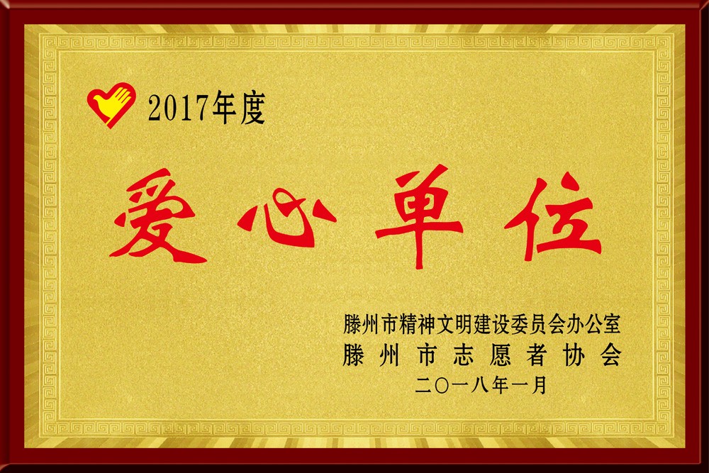 ◆1月20日,在滕州市志愿者公益年會中,山東古之滕商務發(fā)展有限公司被授為愛心企業(yè)。