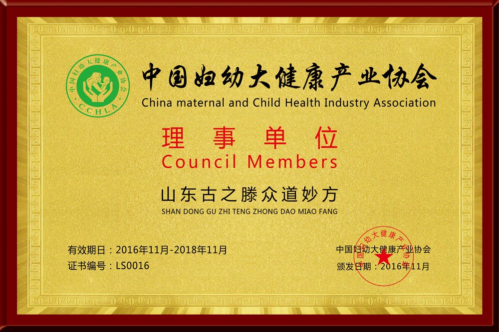 ◆2015年10月中華育嬰?yún)f(xié)會授予山東古之滕商務發(fā)展有限公司“會員單位”