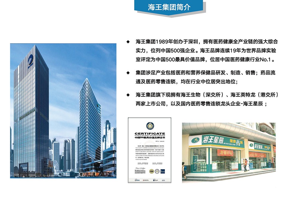 海王集團(tuán)旗下現(xiàn)擁有海王生物(深交所)、海王英特龍(港交所)兩家上市公司,以及國(guó)內(nèi)醫(yī)藥零售連鎖龍頭企業(yè)-海王星辰﹔