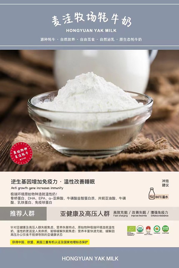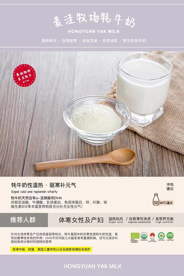 紅原牦牛奶粉,始于1956,原生營養(yǎng)、無人工添加,中國、歐盟、美國三重有機認(rèn)證。