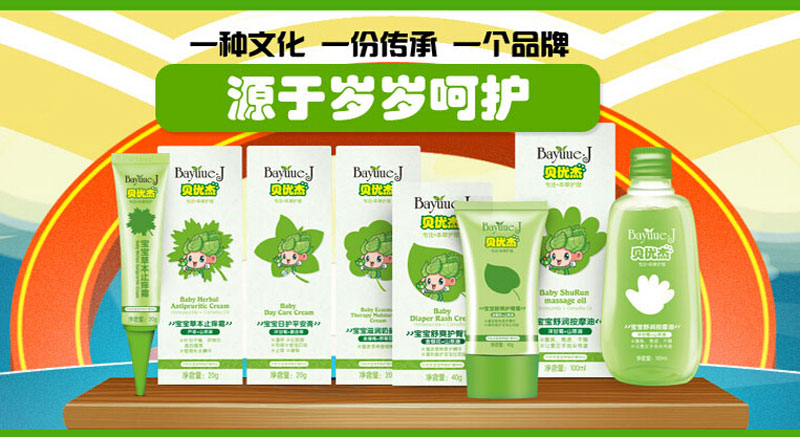 “貝優(yōu)杰”是公司傾心打造研發(fā)的核心品牌,秉承“本草呵護(hù)”的品牌核心理念,堅(jiān)持以“綠色、安全、溫和、有效”為基本出發(fā)點(diǎn),積極打造一個(gè)更安全、更放心的嬰童護(hù)理品牌。它以其“綠色、健康、生動(dòng)”的卡通形象,深受消費(fèi)者喜愛(ài)。貝優(yōu)杰始終堅(jiān)持本草護(hù)理理念,深入探索嬰童階段的生理特征,貼心呵護(hù)孩子們的身體健康!