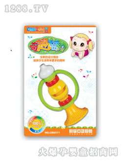 搖鈴是寶寶們成長(zhǎng)過程中必不可少的玩具,鮮艷的色彩能夠刺激寶寶視覺神經(jīng)的發(fā)育;不同的搖鈴會(huì)發(fā)出不同的聲音,可以藉此訓(xùn)練嬰兒的聽覺。超貝搖鈴?fù)婢呔秃懿诲e(cuò)哦,產(chǎn)品質(zhì)量安全可靠,寶寶可以放心玩耍。此產(chǎn)品一上市就受到廣大母嬰消費(fèi)者的信賴和支持。