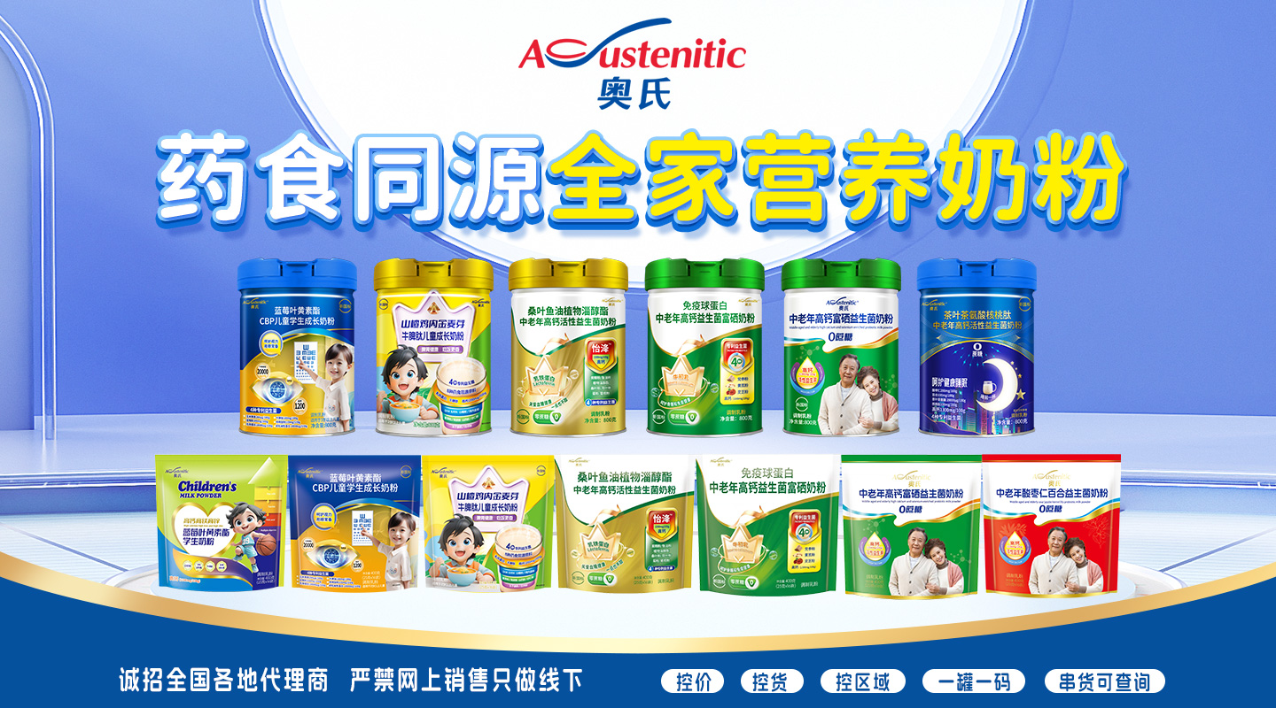 奧氏(Austenitic ) 是專注于藥食同源營(yíng)養(yǎng)健康的奶粉品牌,品牌以“科學(xué)營(yíng)養(yǎng)·健康齡距離”為核心理念,結(jié)合現(xiàn)代營(yíng)養(yǎng)科技,打造符合健康需求的高端奶粉產(chǎn)品。