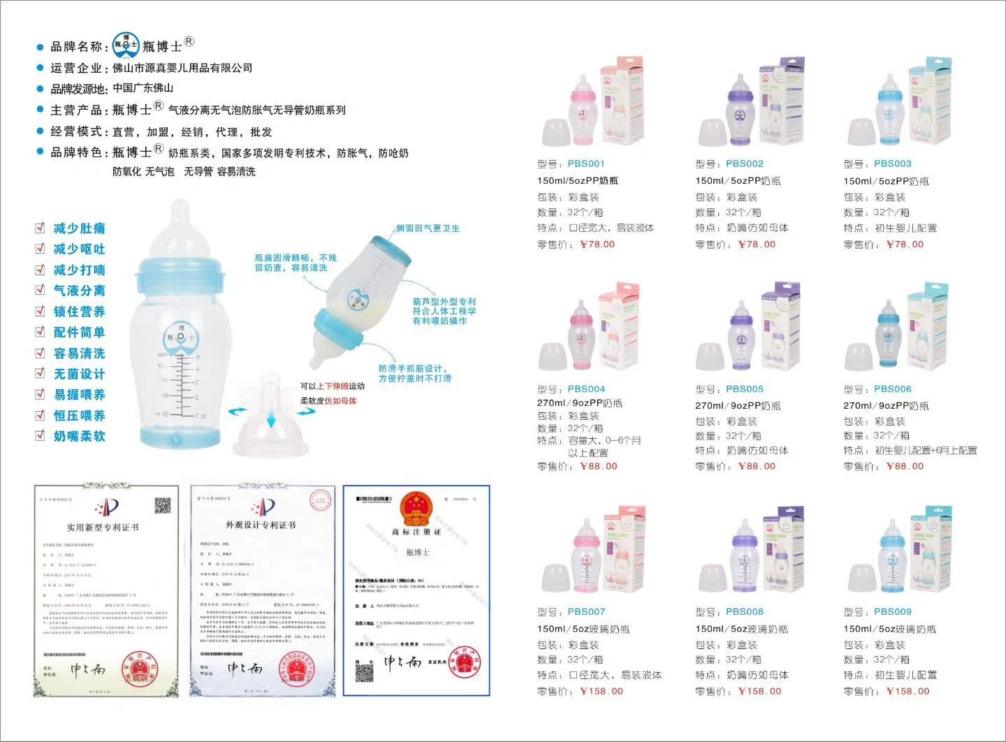 佛山市源真嬰兒用品有限公司,是一家集研發(fā)、生產(chǎn)、銷售為一體的現(xiàn)代化企業(yè),旗下品牌“瓶博士”,專注奶瓶、奶嘴等母嬰產(chǎn)品的研發(fā)及生產(chǎn),堅(jiān)持以品質(zhì)樹(shù)立口碑,持續(xù)開(kāi)發(fā)和創(chuàng)新,為億萬(wàn)家庭的寶寶提供時(shí)尚、健康、安全、舒適的生活用品。