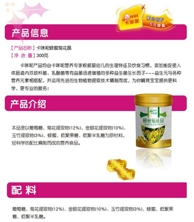 卡咪呢小兒板藍(lán)根顆粒是上?ㄟ淠啬笅胗闷酚邢薰酒煜庐a(chǎn)品,專(zhuān)為嬰幼兒設(shè)計(jì),專(zhuān)業(yè)、安全,幫助寶寶可以預(yù)防感冒抵抗病毒,是廣大父母育兒的好幫手。卡咪呢小兒板藍(lán)根顆粒不含任何色素、防腐劑,安全放心。