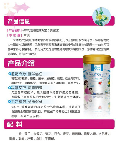 上海卡咪呢母嬰用品有限公司主營母嬰營養(yǎng)保健食品,產(chǎn)品原料來自有機農(nóng)業(yè)生產(chǎn)體系或野生天然產(chǎn)品,通過國家相關(guān)有機食品認證機構(gòu)的嚴格檢測認證,現(xiàn)面向全國空白市場區(qū)域誠招代理商加盟。