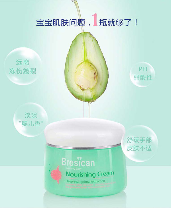 貝施康柔滑滋養(yǎng)霜是 “深海優(yōu)萃”系列的滋養(yǎng)產(chǎn)品,根據(jù)嬰兒特殊肌膚PH特點(diǎn)研制,從深海中萃取自然純凈成分,配方做到純正安全,讓媽媽心安!