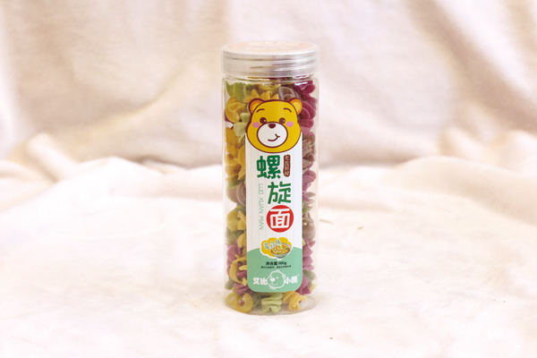 艾比小熊面條系列按造型分,有果蔬面、螺旋面、卡通面和海螺面;按口味分,有南瓜、混合、胡蘿卜、菠菜、甜菜等口味,以天然小麥粉為原料,小麥粉有著豐富的淀粉、蛋白質、粗纖維、脂肪油、蛋白質酶及微量元素等