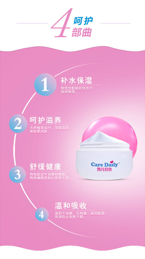 凱兒得樂(lè)嬰幼兒草本洗衣液,蘊(yùn)含油橄欖果提取物,草本植物提取物,天然溫和配方,抗防靜電,不傷手,不含磷及熒光增白劑。為寶寶設(shè)計(jì),針對(duì)寶寶肌膚嬌嫩而脆弱的特點(diǎn),使用倍柔親膚潔凈成分,滲入衣物纖維,瓦解頑固污漬,易漂洗無(wú)殘留,做到衣物的真正潔凈。