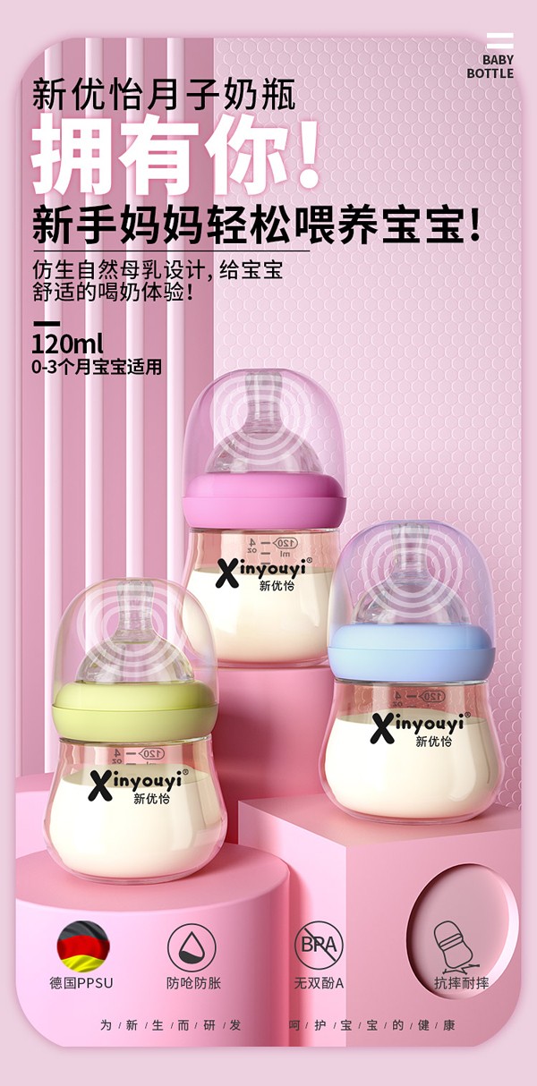 奶瓶,作為嬰幼兒成長飲食之路上的必需品,家長在選擇上也是十分謹(jǐn)慎小心的。而母嬰行業(yè)的代理商群體,在代理上也是一樣。希望能夠代理一款備受市場青睞以及認(rèn)可的品牌產(chǎn)品。這樣才能夠更好的打開市場,收獲更多財富。新優(yōu)怡雙層防爆玻璃奶瓶180ml 灰色,大家了解嗎?諸多優(yōu)勢,助你財富滿滿。