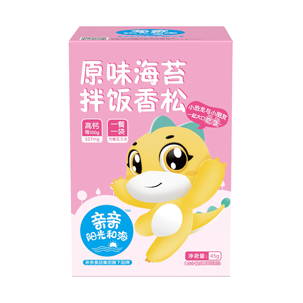 親親陽(yáng)光和海-海苔拌飯香松產(chǎn)品基于寶媽受到孩子不愛吃飯強(qiáng)烈痛點(diǎn),歷經(jīng)多月開發(fā),采用精致盒裝(內(nèi)置小袋)每餐使用一袋,既方便又受孩子歡迎;該產(chǎn)品采用海藻糖在用餐使用而有效降低蛀牙風(fēng)險(xiǎn),口味香松富含鈣,有助于孩子的骨骼發(fā)育。