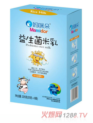 媽咪朵益生菌米乳精選優(yōu)質(zhì)天然的食材,富含寶寶成長所需的蛋白質(zhì)、淀粉、膳食纖維以及豐富的鈣、鐵、鋅等微量元素,專為中國寶寶精心設(shè)計(jì),且粉質(zhì)細(xì)膩,方便沖調(diào)不結(jié)塊,密閉包裝,更干凈衛(wèi)生。