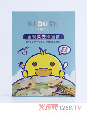 您所在位置:首頁>東莞市德力恒嬰童用品有限公司>功夫小鴨金裝果蔬蝴蝶卡通直混合果蔬面多種形狀面條210g