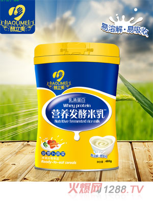 1.酵立美發(fā)酵米乳是以大米、小米等五谷和脫脂乳粉為主要原料,以腸胃道營養(yǎng)益生菌(嗜酸乳桿菌或動物雙歧桿菌)作發(fā)酵劑,經(jīng)烘烤、糊化、酶解、調(diào)配、菌解等工藝,制成口感細膩,質(zhì)地均勻,有大米或相應(yīng)五谷的焦奶香味,不添加食用色素和防腐劑的發(fā)酵米乳。
