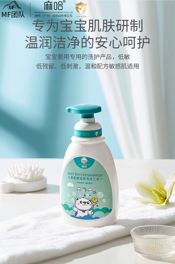 麻哈兒童柔嫩洗沐二合一露,采用無淚少泡沫且容易沖洗的安全配方,有效清潔,洗發(fā) +護發(fā)+沐浴+護膚,四效合一,溫柔呵護寶寶嬌嫩肌膚,一瓶搞定洗沐困擾,讓寶寶愛上洗澡。