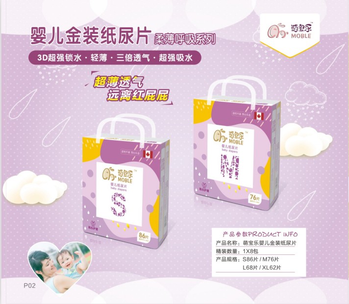 “萌寶樂”使用了健康護理型圖標,是專業(yè)用于健康護理的標識,得到專業(yè)檢驗部門的認可。它使用的材料大都是進口高分子和健康純白無印刷油墨的精選優(yōu)質(zhì)熱風(fēng)無紡布,讓產(chǎn)品擁有倍透排濕、柔潤親膚,抑菌防紅臀的特點,是值得媽媽信賴和放心的產(chǎn)品。