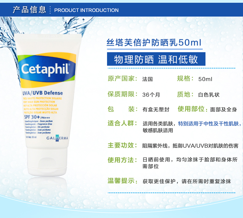 絲塔芙倍護(hù)防曬乳,全面抵御紫外線,防水防汗,溫和親膚,乳液質(zhì)地,水潤清透,不泛白不油膩,滋潤度特別好,成分安全,不容易刺激皮膚,過敏的可能性也比較小,特別適合嬰幼兒使用。SPF30+,PA+++,防曬防黑,無論是出游還是日常使用都特別適合,防水效果特別好,可以減少補(bǔ)涂的時間,能夠提供能長久的防曬時間,幫助滋潤修護(hù)受損肌膚,讓寶寶臉蛋細(xì)膩有光澤,拒絕曬后不適,親膚易水洗,讓寶寶安然度夏。
