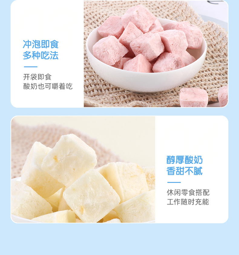 • 貼牌定制沖泡干吃益生菌塊搭配燕麥實(shí)力工廠散裝批發(fā)凍干酸奶塊