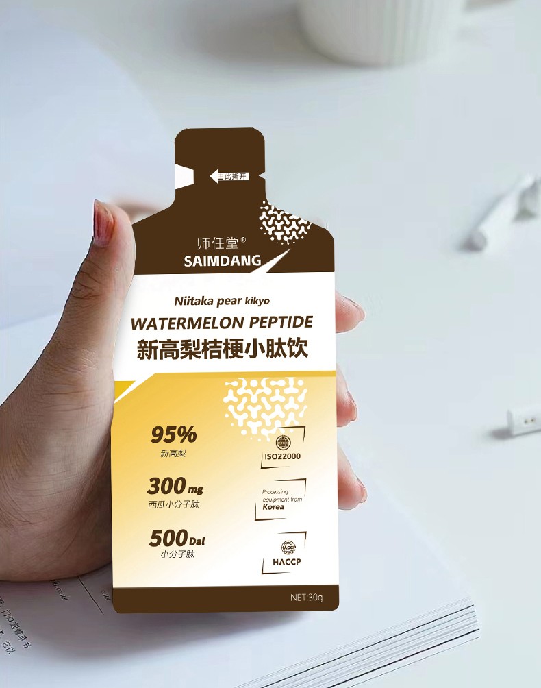 師任堂新高梨桔梗小肽飲,95%新高梨原液+桔梗+西瓜小分子肽+酵母β-葡聚糖,4種營養(yǎng)成分,溫和不寒涼,喉嚨清潤更舒爽!每袋添加西瓜小分子肽300毫克,營養(yǎng)更好吸收!健康食材提取,0防腐劑0添加劑0香精,配料表干凈,安全食養(yǎng),大人小孩喝著都放心!獨立包裝,方便攜帶,水果味道,寶貝也更愛喝!