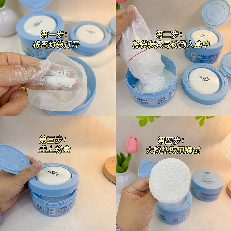 小奕噠小甘菊爽身粉,針對(duì)幼嫩特殊膚質(zhì)研制,配方溫和純凈,含玉米定粉,特含云母粉、野菊花等,科學(xué)配比,呵護(hù)幼嫩肌膚。不含滑石粉,粉質(zhì)細(xì)膩柔滑,吸濕不黏?晌テつw及皮膚褶皺處多余的濕氣,保持身體干爽舒適。減少皮膚與衣物產(chǎn)生的摩擦,呵護(hù)肌膚干爽不油膩,讓寶寶感覺滋潤又清爽。