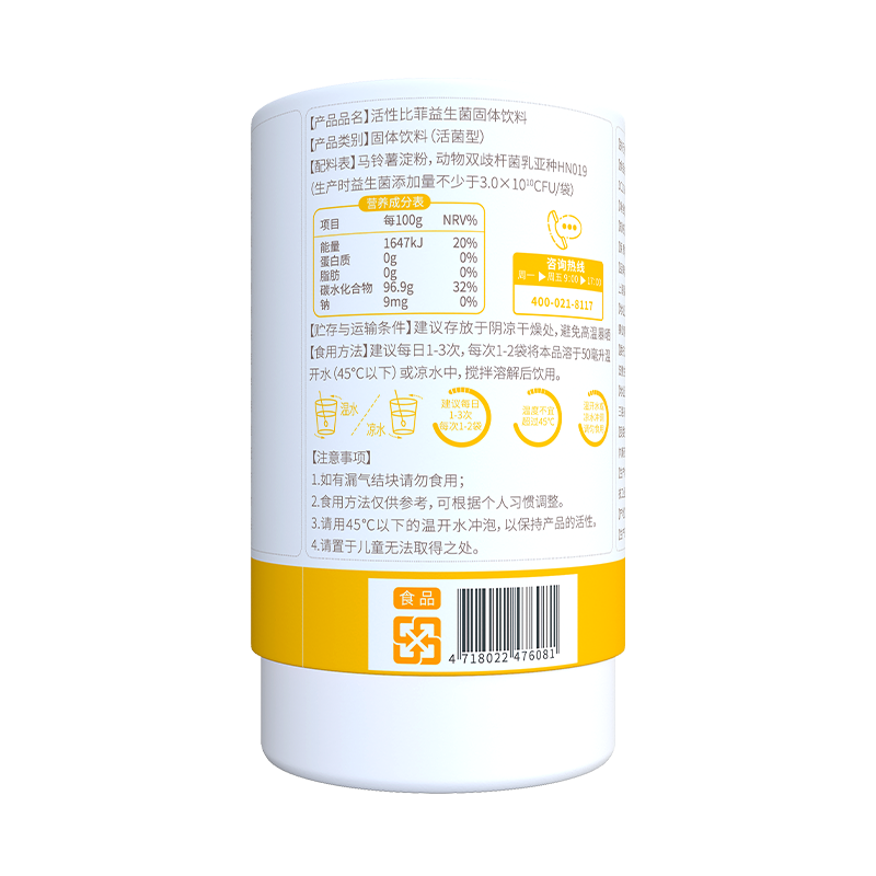 生產(chǎn)時(shí)每袋添加300億有益菌