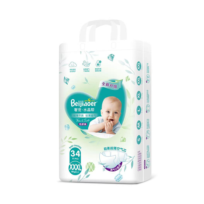 貝嬌兒奢寵水晶幫紙尿褲,采用超柔透氣熱風(fēng)底膜,具有親膚、透氣、干爽的特點。親膚棉柔面層,呵護嬌嫩肌膚;0.1cm纖薄,輕薄無負擔(dān);進口高分子,小身材大吸量;約50000個呼吸微孔,空氣循環(huán)暢通,透氣干爽,遠離紅屁屁。凸點設(shè)計,減少接觸面,及時散發(fā)悶熱潮氣。超柔超薄空氣芯,全方位瞬吸導(dǎo)流,拒絕鼓包,拒絕斷層,多次尿量,一片瞬吸,鎖住尿液不回滲,屁屁拒絕潮濕,整晚安睡。