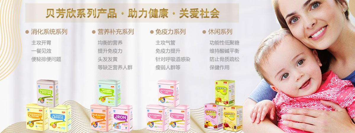 “貝芳欣”系列產(chǎn)品覆蓋消化系統(tǒng)、免疫系統(tǒng)、營養(yǎng)系列等多種母嬰健康營養(yǎng)食品和日常護理用品,采用臺灣先進技術、科學配方和進口原料,其優(yōu)良品質(zhì)深受母嬰消費者的推崇。