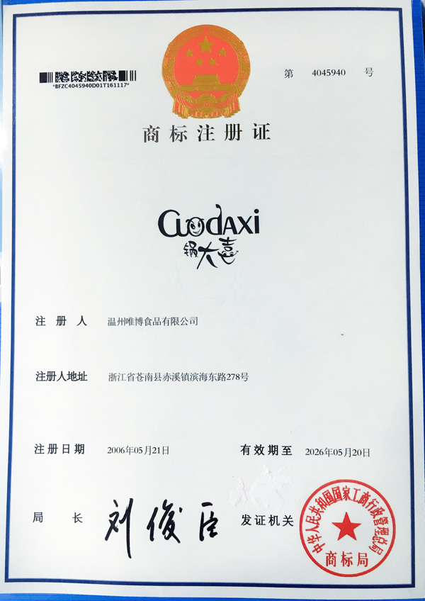 鍋大喜是溫州唯博食品有限公司旗下品牌,公司創(chuàng)辦于2012年,座落于享有“紫菜之鄉(xiāng)”美譽(yù)的蒼南縣赤溪鎮(zhèn),占地面積5000多平方米,建筑面積3000多平方米,現(xiàn)擁有員工95人,其中專(zhuān)業(yè)技術(shù)人員28人。目前擁有大型淡水紫菜養(yǎng)殖生產(chǎn)基地800畝,是一家集海產(chǎn)品養(yǎng)殖、加工、銷(xiāo)售一條龍的企業(yè),主導(dǎo)的產(chǎn)品有韓式香酥海苔、芝麻夾心海苔、海苔卷、壽司海苔、紫菜湯等產(chǎn)品。