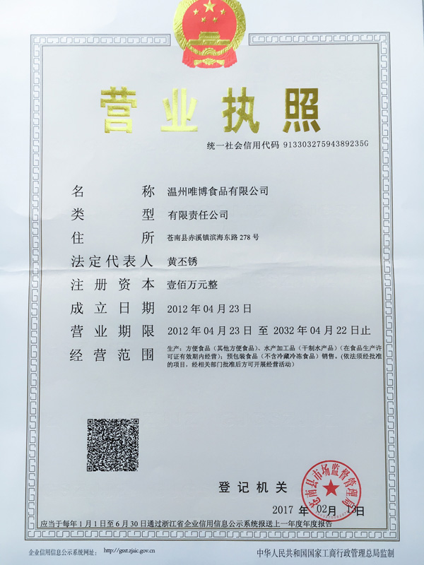 公司名稱(chēng):溫州唯博食品有限公司