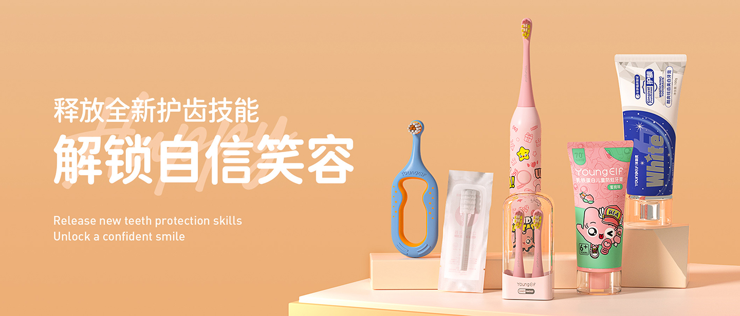YOUNGELF代表的不僅僅是兒童口腔的健康,而更多的是要傳達給消費者一種對于潮流與健康結合的新文化,新的生活方式。同時我們從兒童口腔問題的根源出發(fā),結合強大的研發(fā)團隊以及頂尖的兒童口腔產(chǎn)品設計團隊,真正的在消費者痛點中進行深挖掘,深思考,深分析從而解決消費者的痛點問題。 并引入了歐美的認證體系來為消費者們保駕護航,真正做到生產(chǎn)質量拔尖,產(chǎn)品品質卓越的品牌標準。 不久的未來,我們將成為兒童口腔護理產(chǎn)品的標準制定者,同時也會成為行業(yè)的領頭“洋”。