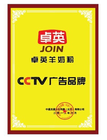 “卓英”品牌即將成為央視合作品牌,公司主要經(jīng)營項目為:嬰幼兒配方羊奶粉、女性配方羊奶粉、嬰幼兒以及兒童營養(yǎng)蜂蜜等系列產(chǎn)品,產(chǎn)品規(guī)格近20種,卓英人將不斷努力,力爭在五年時間銷售收入過億元大關(guān)。