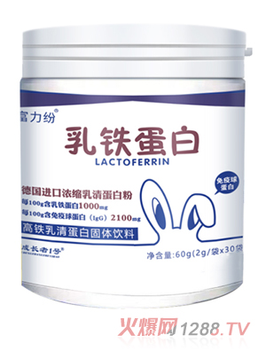 其中,每100g富力紛乳鐵蛋白富含1000mg的乳鐵蛋白和2100mg的免疫球蛋白,高純度,乳鐵蛋白+免疫球蛋白組合,雙效防護,科學配比鐵元素,有效提高鐵吸收率4-6倍,改善貧血,好吸收,更安全。