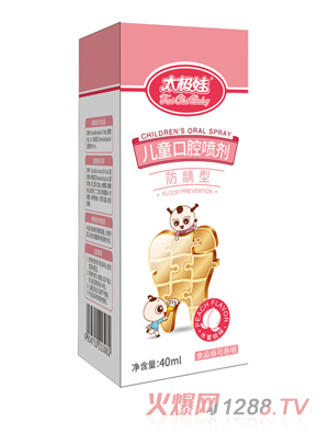 太極娃兒童口腔噴劑含茶葉提取物、啤酒花提取物、無色素、無防腐劑,含負(fù)離子抗菌配方,一直口腔內(nèi)細(xì)菌,添加高鈣護(hù)齒成分,強(qiáng)壯牙齒,更有效防齲齒。水果口味,孩子易接受,輕松一噴,口腔問題不再難!