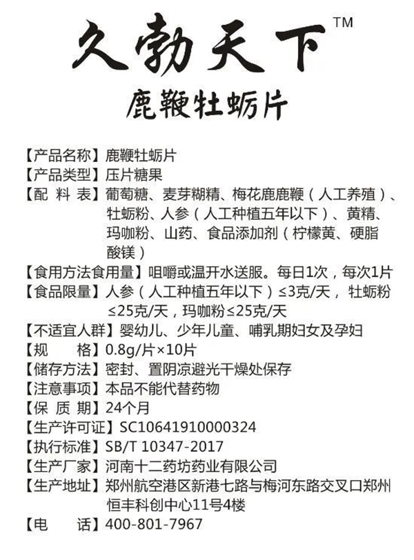 5 久勃天下人參鹿鞭牡蠣成人滋補(bǔ)口服片