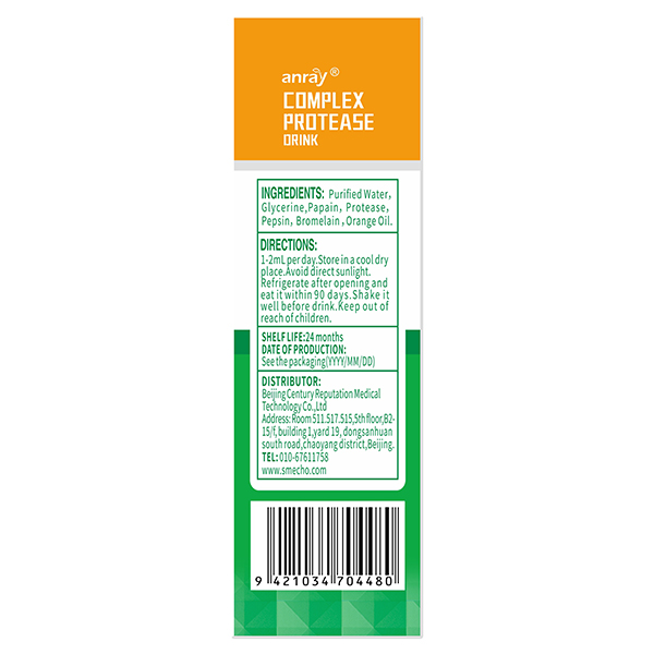 青萌復合蛋白酶飲品,新西蘭原裝進口,主要成分有:水、甘油、木瓜蛋白酶、蛋白酶、胃蛋白酶、菠蘿蛋白酶、甜橙油,每毫升含復合蛋白酶120mg,高含量,高酶活性,促進蛋白質消化吸收,提高利用率。液體設計,甜橙口感,食用方便。