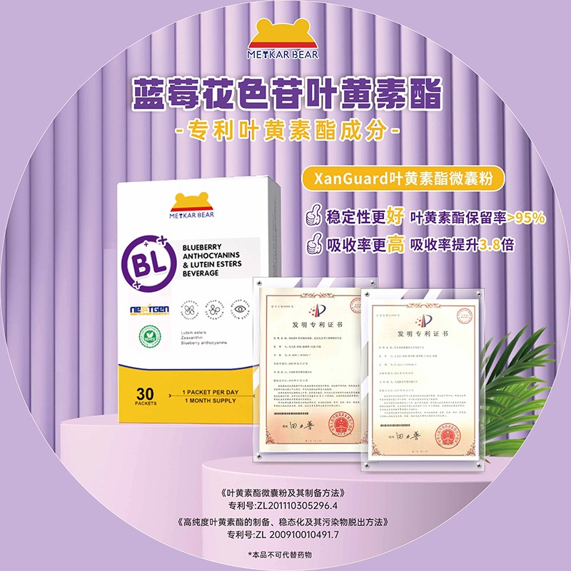 此次參展,瑞普斯攜旗下MEYKARBEAR美卡熊品牌新品——藍(lán)莓花色苷葉黃素酯飲品重磅亮相。這款采用條帶飲劑型設(shè)計(jì)的護(hù)眼佳品,巧妙融合了藍(lán)莓與葉黃素酯的自然精華,特含專利成分XanGuard葉黃素酯微囊粉100mg,采用專利微囊包裹技術(shù),確保營(yíng)養(yǎng)成分穩(wěn)定,更易被吸收,補(bǔ)充眼睛所需,讓眼部健康更有保障。
