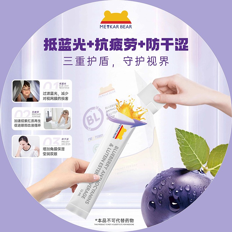 不僅如此,MEYKARBEAR美卡熊藍(lán)莓花色苷葉黃素酯飲品甄選了10大原料復(fù)合配方,多重天然營(yíng)養(yǎng)呵護(hù),酸甜口感,喚醒味蕾,嘗得出的“潤(rùn)”、“甜”、“鮮”。專治嘴饞、嘴刁的寶寶,全方位滋養(yǎng)寶寶的嬌嫩雙眼,為孩子的成長(zhǎng)之路點(diǎn)亮一盞明亮的燈塔。