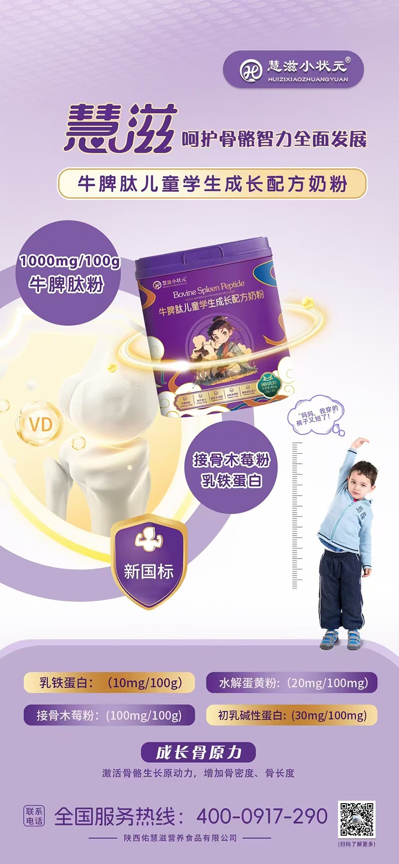 慧滋小狀元牛脾肽兒童學(xué)生成長(zhǎng)配方奶粉