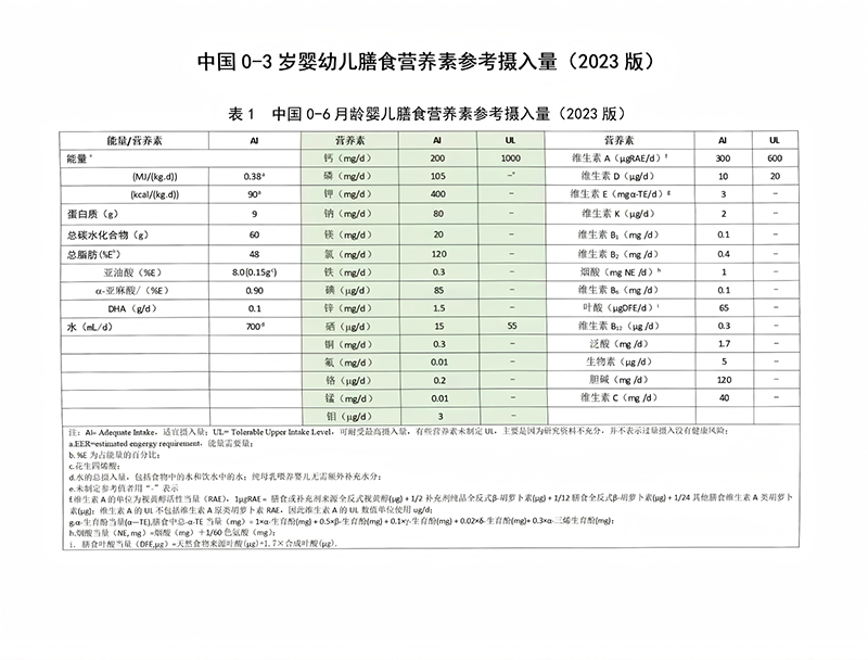 0-3歲是嬰幼兒生長發(fā)育的關(guān)鍵階段,科學(xué)搭配膳食營養(yǎng)對(duì)健康奠定終身基礎(chǔ)。根據(jù)《中國居民膳食指南(2023)》,建議分階段滿足營養(yǎng)需求,膳食營養(yǎng)素參考攝入量: