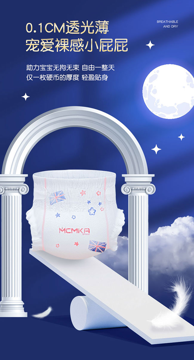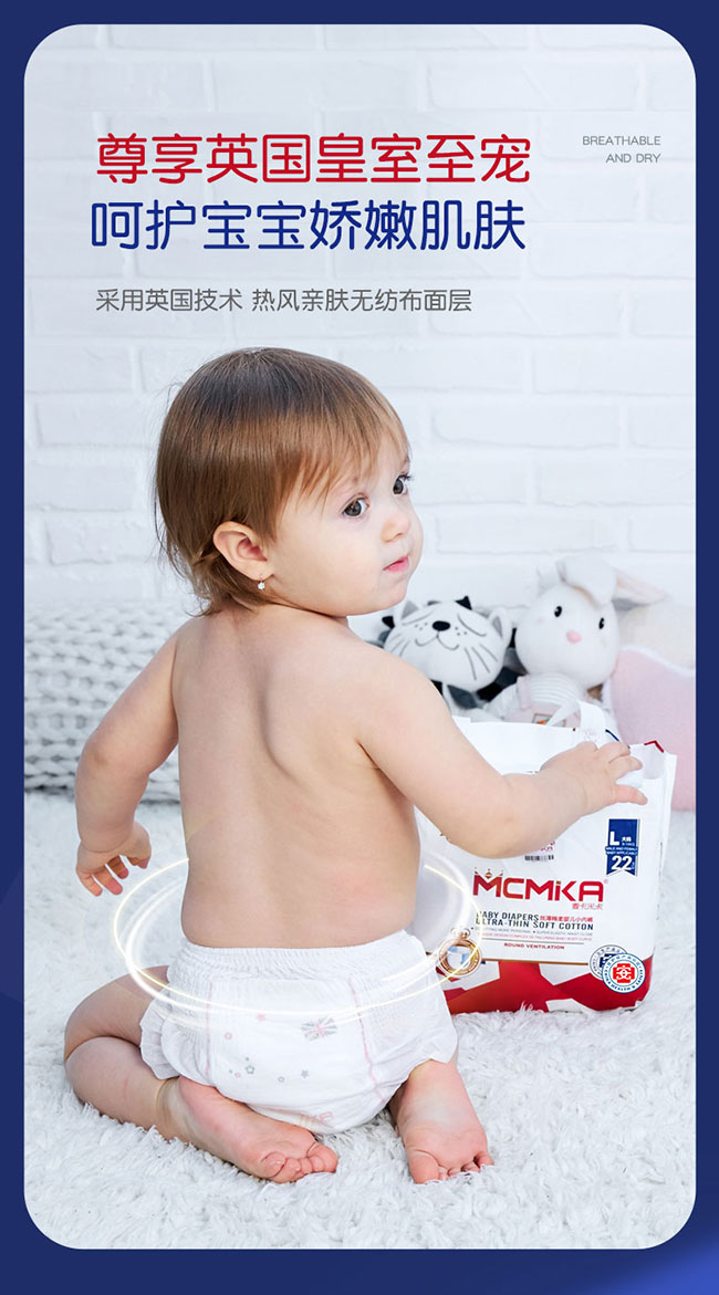 它采用英國技術(shù),熱風(fēng)親膚無紡布面層呵護寶寶嬌嫩肌膚。僅 0.1cm 厚,如一枚硬幣,輕盈貼身,給寶寶裸感體驗,助力自由活動。添加金縷梅植萃精華,含柔敏因子,舒緩肌膚,遠離紅屁屁。