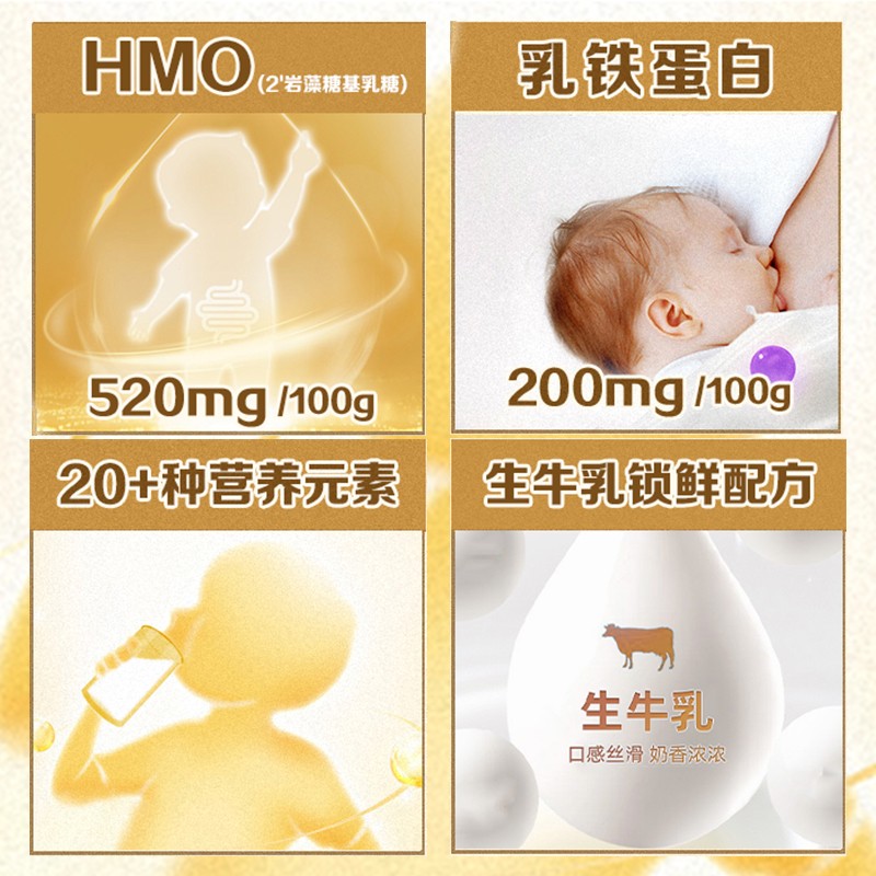 在營養(yǎng)配方上,澳貝高 HMO 乳鐵蛋白兒童奶粉 PLUS 進行了科學(xué)配比,不僅添加了高含量乳鐵蛋白和母乳低聚糖 HMO (2’-FL),還協(xié)同搭配初乳堿性蛋白、水解蛋黃粉、乳礦物質(zhì)等多種營養(yǎng)成分,同時包含 DHA、ARA、燕窩酸、牛磺酸、葉黃素,以及 10 大維生素和 8 大礦物質(zhì)。豐富的營養(yǎng)元素相互配合,為成長期兒童構(gòu)建了全面的營養(yǎng)體系,滿足孩子日常成長過程中的營養(yǎng)需求,成為眾多家庭為孩子補充營養(yǎng)的優(yōu)質(zhì)之選,也為兒童奶粉市場注入了新的活力