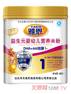 雅恩是汕頭市天地和食品有限公司旗下品牌,含有米粉、葡萄糖、菊花精等多個(gè)系列,為bao--bao的健康成長(zhǎng)貢獻(xiàn)自己的力量。展望未來,雅恩以質(zhì)量安全為要領(lǐng),勤勉實(shí)干,誠(chéng)信為本,穩(wěn)健經(jīng)營(yíng),為消費(fèi)者生產(chǎn)更多安全、美味、健康的食品,為社會(huì)共同鑄就食品行業(yè)的夢(mèng)想與未來!