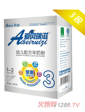 愛貝瑞滋愛康900g3段是適合嬰兒食用的營養(yǎng)配方羊奶粉,其乳清蛋白含量較高,與母乳接近,易于嬰兒消化吸收,愛貝瑞滋愛康900g3段特別添加了人體所必須的多種氨基酸、礦物質(zhì)、維生素,適合1-3歲嬰兒食用。