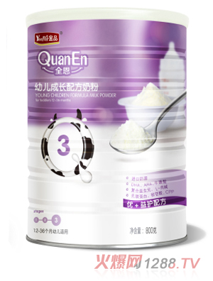 對(duì)bao--bao來(lái)說(shuō)健康聰明成長(zhǎng)是關(guān)鍵,時(shí)期是生長(zhǎng)發(fā)育的黃金期,營(yíng)養(yǎng)的有效的充足補(bǔ)充是必要,奶粉的選擇就應(yīng)該選擇最優(yōu)質(zhì)的產(chǎn)品!全恩奶粉秉承“只做自然運(yùn)輸工”的制造理念,選用進(jìn)口優(yōu)質(zhì)奶源,采用四重優(yōu)+益護(hù)配方,專為中國(guó)bao--bao打造一款天然、安全、營(yíng)養(yǎng)均衡的奶粉。
