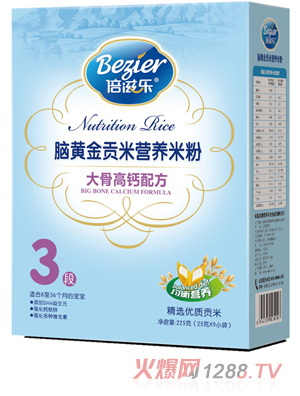 倍滋樂腦黃金玉米營養(yǎng)米粉適合6-24個月的bao--bao食用,強化鈣、鐵、鋅以及多種維生素等多種營養(yǎng)物質(zhì),為bao--bao提供 充足的營養(yǎng),滿足了bao--bao成長所需,而且特別添加對bao--bao智力和changdao有益的DHA、益生元兩種元素,讓您的bao--bao更聰 慧,同時也擁有健康好腸胃。