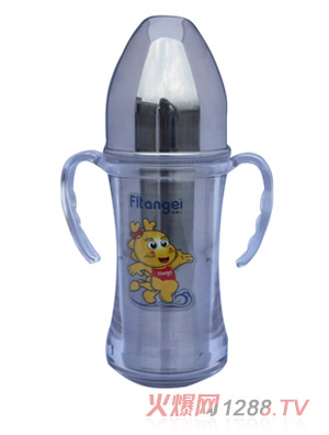 安箕兒卡通龍不銹鋼奶瓶,專業(yè)的奶瓶,不銹鋼材質(zhì),可以長久反復(fù)使用,能伴隨bao--bao健康成長。
