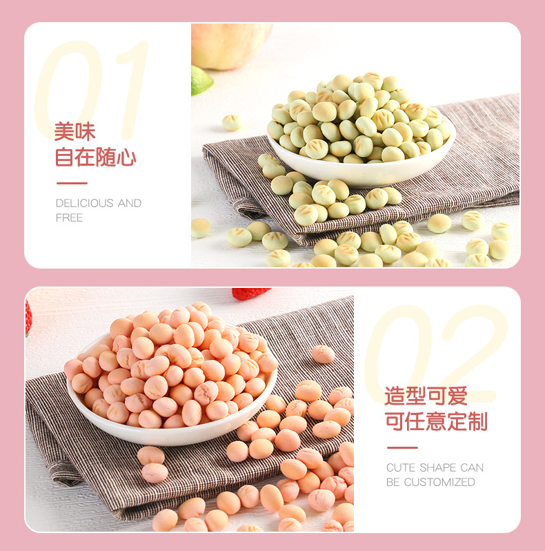 OEM貼牌兒童餅干500g玉米藍(lán)莓紫薯源頭廠家雞內(nèi)金果蔬味豆豆餅干產(chǎn)品展示